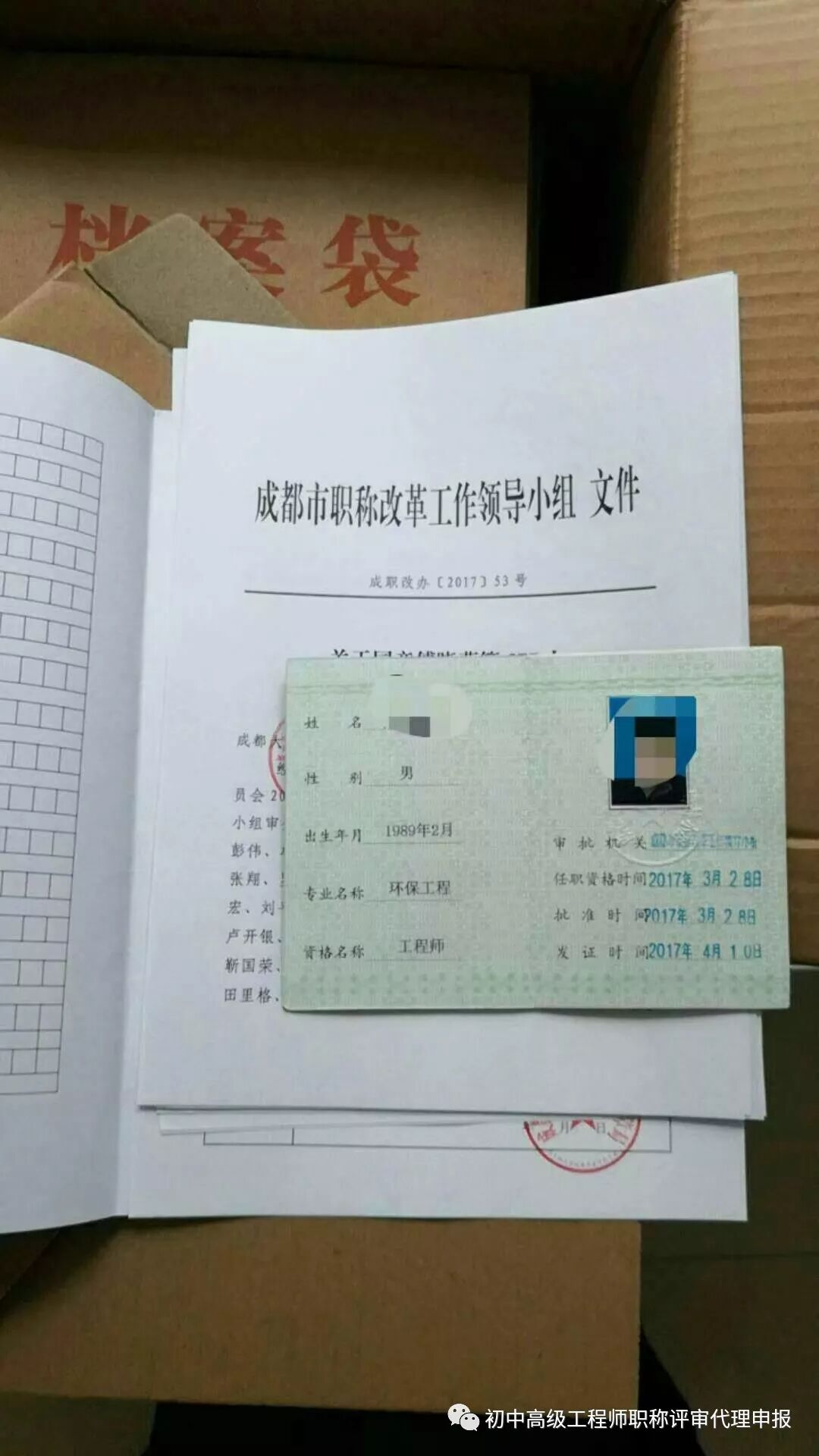 3个月内出的中级职称来了!本人到窗口去领证。